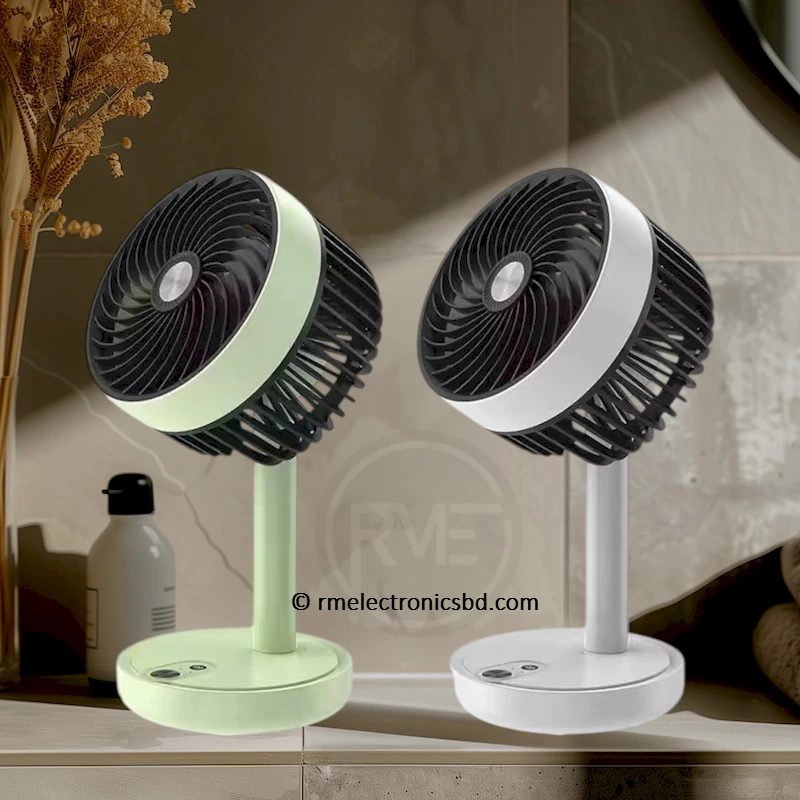 ছোট হলেও একদম পাওয়ারফুল ফ্যান। ৩ গিয়ার স্পিড অপশনে বাতাস নিয়ন্ত্রণ করা যায় আর চার্জিং টাইমও ঠিকঠাক। অফিস ডেস্কে প্রতিদিন ব্যবহার করি—একদম পারফেক্ট!